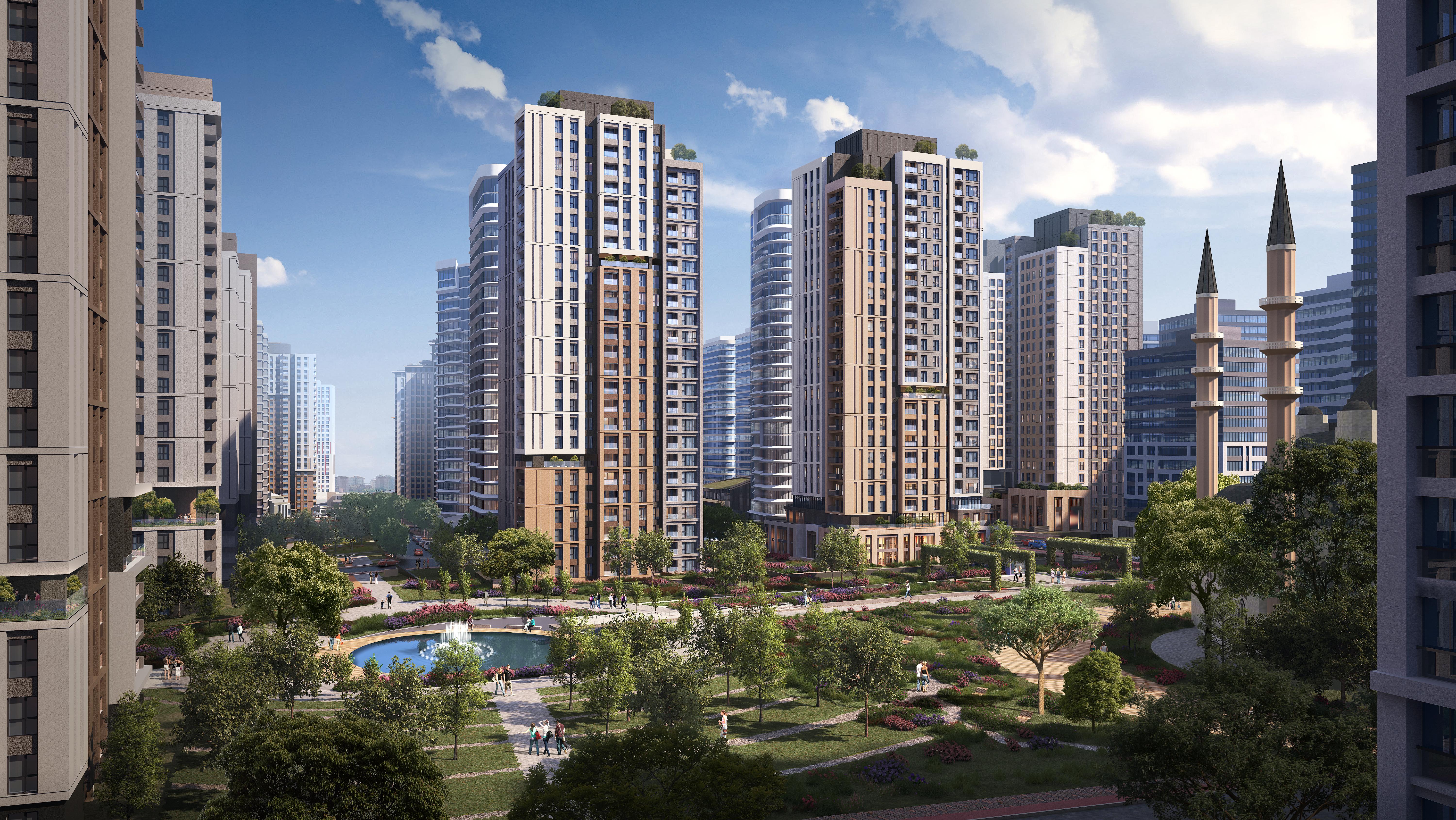 Güvenli, konforlu evleri; sosyal alanları, parkları, bahçeleri,